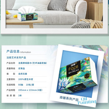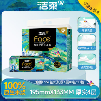 洁柔抽纸 艺术油画Face加厚4层80抽*10包 面巾纸 柔软亲肤 大气典雅(新老品交替发货)