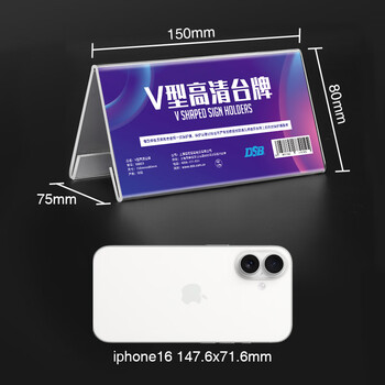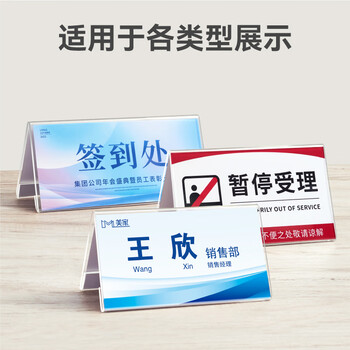 DSB(迪士比)桌牌席卡亚克力V型台卡台签三角立牌桌签会议展示牌姓名牌水牌150mm*80mm10个装8851V