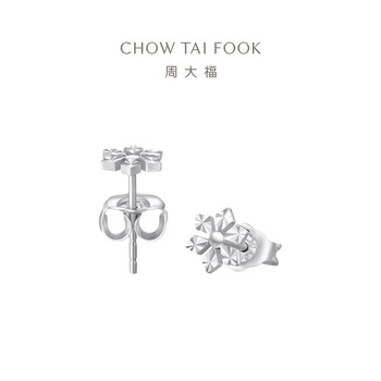 周大福晶莹雪花 PT950铂金耳钉 PT159511生日礼物