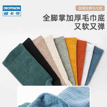 迪卡侬秋冬保暖男士长筒运动袜黑色(2双装)35~39码-4452035