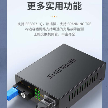 胜为(shengwei)千兆单模单纤光纤收发器 光电转换器 SC接口电信级自适应3KM 一对装 BGH203GX