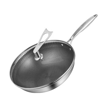 Debo德铂304不锈钢蜂窝不粘炒锅32cm