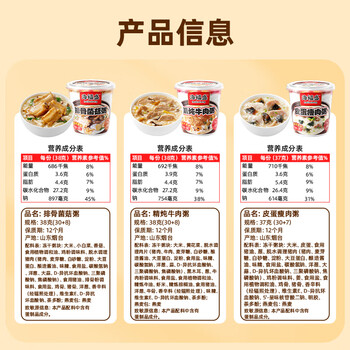 皮蛋瘦肉粥37g*2 排骨菌菇粥38g*2 精炖牛肉粥38g*2 家常海鲜粥38g*2 麦芯鸡粥33g*2