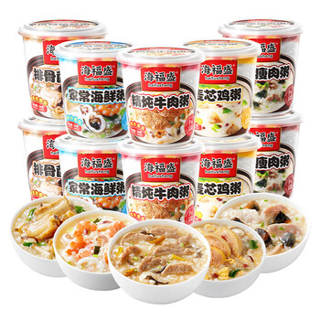 海福盛方便速食粥早餐宵夜懒人食品冻干八宝粥经典粥5味10杯368g