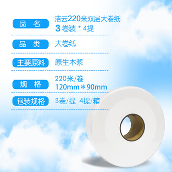 洁云商用有芯大卷纸 2层220米*12卷 整箱 卫生纸大盘纸厕纸商场酒店
