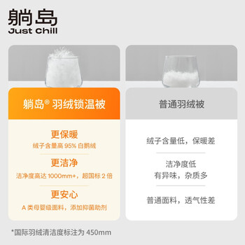 躺岛 全鹅绒A类95%匈牙利白鹅绒羽绒被 冬被 845g 220*240cm