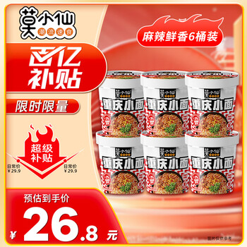 莫小仙重庆小面108g*6桶装方便面速食麻辣泡面酸辣粉即食休闲零食夜宵