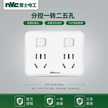 NVC雷士电工 新国标安全插座转换器 插线板插排排插插头一转二分控 EC3220
