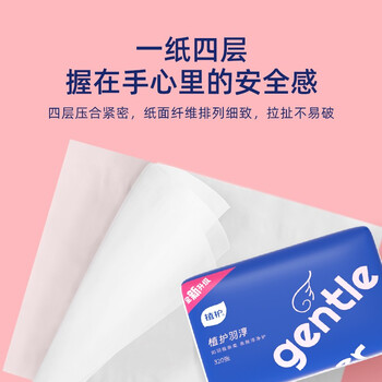 植护 抽纸 羽淳柔韧系列新升级4层320张*4包 加厚(母婴可用 可湿水面巾纸 餐巾纸 卫生纸)