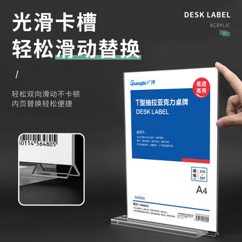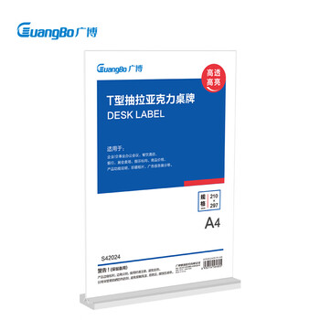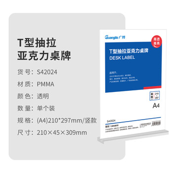 广博(GuangBo)精致T型双面台签亚克力台牌 台卡立牌会议展示牌桌牌酒水餐牌桌卡210mm*297mm A4 竖款 S42024