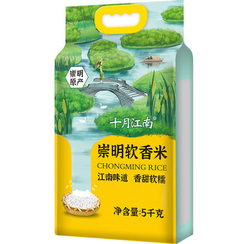 十月江南真空崇明软香米5Kg*1袋