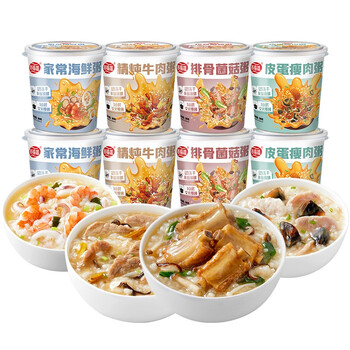 海福盛 排骨菌菇 精炖牛肉 皮蛋瘦肉 家常海鲜 8口味组合粥