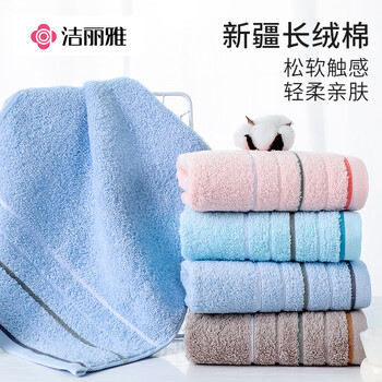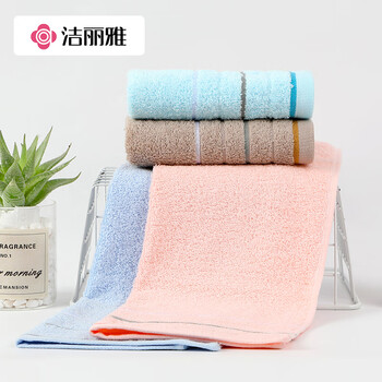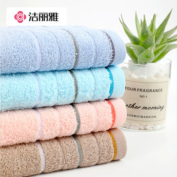 洁丽雅A类纯棉毛巾加厚洗脸巾素色条纹家用成人不掉毛洗澡擦脸巾粉色80g