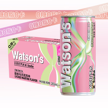 屈臣氏(Watsons)X苏打汽水(荔枝马天尼风味)265mL*15罐/箱