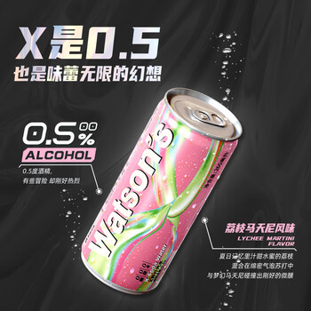 屈臣氏(Watsons)X苏打荔枝马天尼苏打水0糖0卡0脂0.5%酒精微醺饮料265mL*15罐整箱