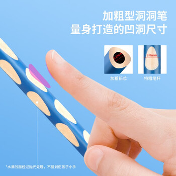 得力(deli)12支2B特粗洞洞铅笔杆易抓握原木儿童矫正铅笔绘画涂鸦考试绘图学生练字笔学生开学文具