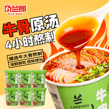 尕兰郎兰州牛肉拉面180g*6杯/箱桶装免煮冲泡速食方便面清真兰州拉面