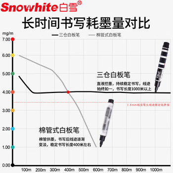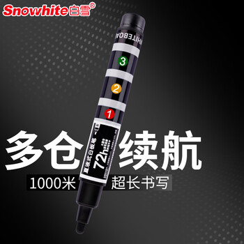 白雪(snowhite)白板笔三仓巨能写直液式可擦 大容量易擦马克笔漂浮笔 办公用品会议记号笔 8支装 黑色 WB588