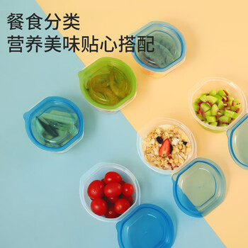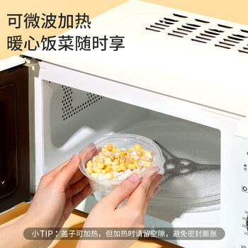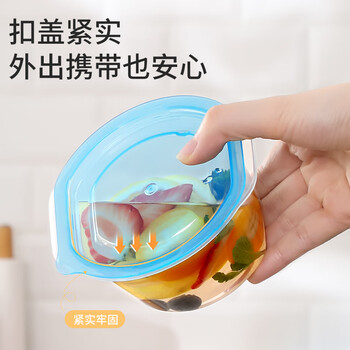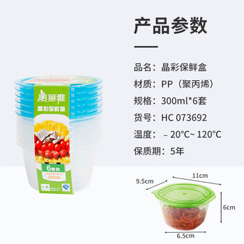 美丽雅保鲜盒圆形300ml*6套食品接触塑料饭盒密封带盖打包碗分装可微波