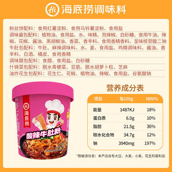 海底捞酸辣粉 冲泡粉丝酸辣粉免煮早餐夜宵米线酸辣牛肚粉160g*6