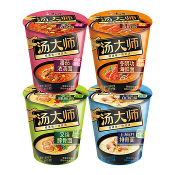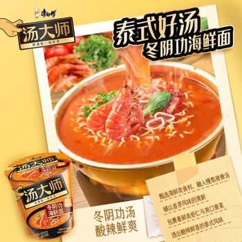 康师傅方便面 汤大师叉烧+瑶柱+番茄+冬阴功81g*12杯 泡面整箱速食