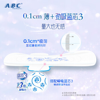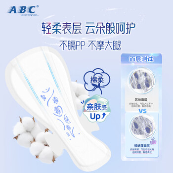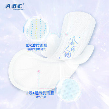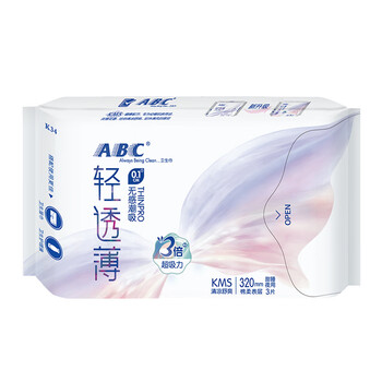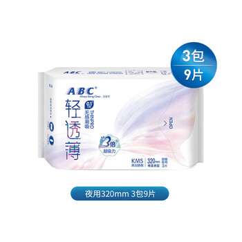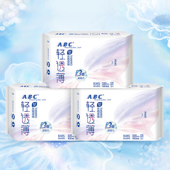 ABCKMS轻透薄健康配方超薄加长夜用卫生巾套装京东自营320mm*9片