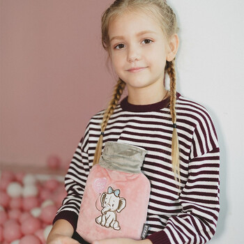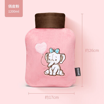 BYXAS百赛施德国TUV认证注水热水袋灌水暖手宝热敷暖水袋 中号小象粉