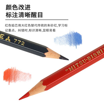 uni三菱 美术素描标记铅笔 学生绘图考试六角铅笔 772 红蓝款 12支装