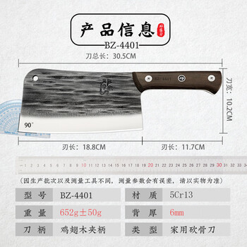邓家刀国潮锻打5铬不锈钢红贵宝实木刀柄厨房家用斩骨刀菜刀 BZ-4401