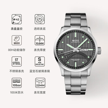 美度(MIDO)瑞士手表 舵手系列 20周年限量款 商务休闲 机械钢带男表