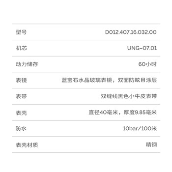 手表*1 质保卡*1 价格吊牌*1 表盒*1