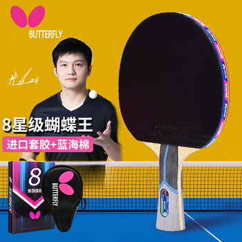 蝴蝶(BUTTERFLY)蝴蝶乒乓球拍8星级802芳碳进攻型蓝海绵双面反胶蝴蝶王横拍/长柄