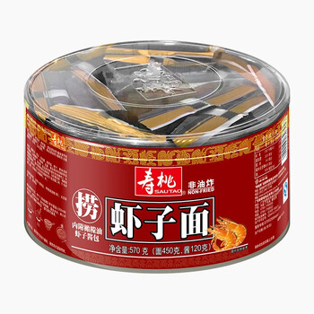 寿桃 虾子面港式方便面手工竹升面非油炸拌面 配橄榄油酱包 570g/盒