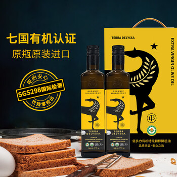 佰多力【保真橄榄油】有机特级初榨橄榄油500ml*2年货节礼盒企业团购