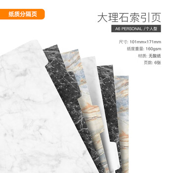 Filofax内页替芯索引页记事本活页手帐本分隔页活页记事本替换芯英国进口打孔纸A6大理石索引页132676