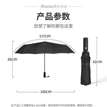 米波迪(Meebordi)全自动雨伞三折加大号防风三折加固升级男士商务折叠伞可定制