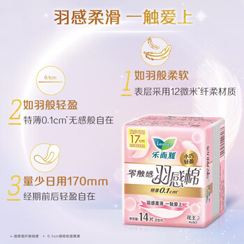 花王乐而雅(Laurier)零触感羽感棉超丝薄17cm迷你卫生巾14片*1