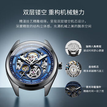 依波路(ERNEST BOREL)瑞士手表男 新年礼物 自动机械手表双层镂空时尚男士手表送礼物