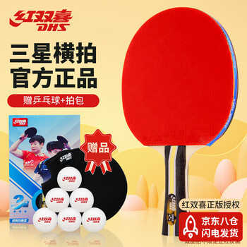 红双喜(DHS)乒乓球拍三星级横拍附拍包附6只球