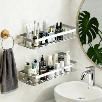 馨沛太空铝方形浴室置物架免打孔卫生间厕所洗漱台收纳壁挂厨房储物架