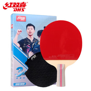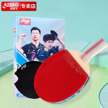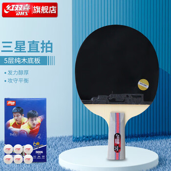红双喜三星双面反胶训练成品拍升级版乒乓球拍直拍H3006含6只装球