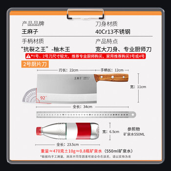 王麻子菜刀厨房专用 商用切片切菜家用锋利切肉刀具 厨师专用2号厨片刀
