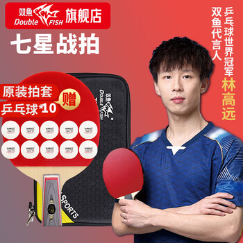 双鱼乒乓球拍直拍单拍短柄 7星七星兵乓球拍进攻型 7D-E 附拍套