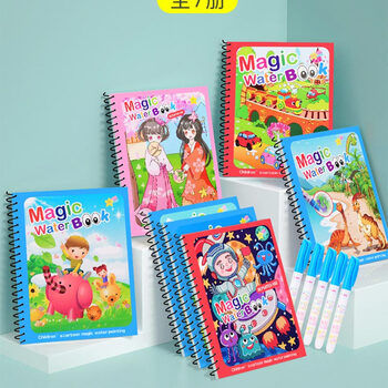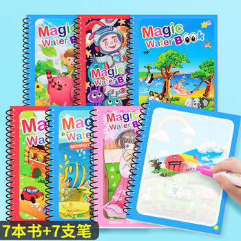 迪普尔 水画本7本+7笔儿童神奇水画本册涂色本清水绘画重反复涂鸦临摹