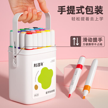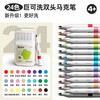 美乐童年水性马克笔24色双头中小学生儿童绘画画笔非酒精速干水彩笔