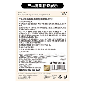卓蓝雅 生姜控油洗发水800ml (清爽控油洗发露洗头膏清爽 男女通用 )