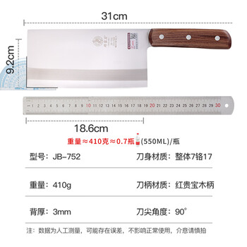 邓家刀 传统锻打工艺7铬不锈钢菜刀 红贵宝实木刀柄 古华斩切刀 JB-752