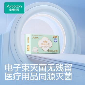 全棉时代奈丝公主消毒级超净吸纯棉超薄透气加长夜用卫生巾360MM 5片/包