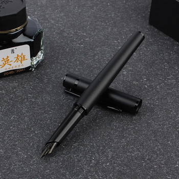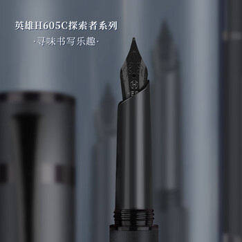 英雄(HERO)钢笔 商务办公铱金笔时尚个性墨水笔书写套装【探索者】H605C黑色黑夹