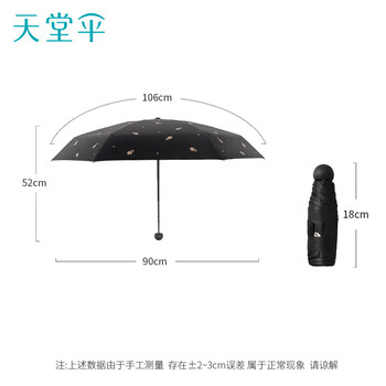 天堂 防紫外线阳伞五折 遮阳伞五折太阳伞印花黑胶防晒伞 黑色